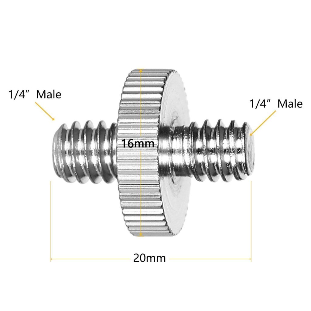 Adaptador universal de ¼” Macho a ¼” Macho, fabricado en metal, ideal para equipo fotográfico.