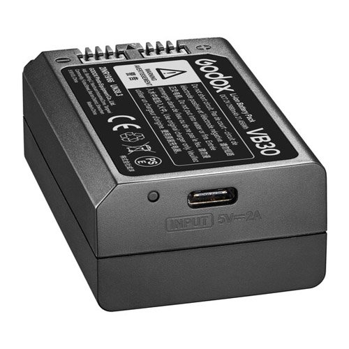 La batería VB30 para el cabezal de flash V1Pro de Godox es una fuente de alimentación recargable de iones de litio. Esta batería tiene una capacidad de 21 Wh y 7,2 V y 2980 mAh.