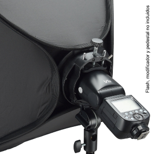 - Acepta flashes de cámara de cualquier marca, de cabeza rectangular o redonda.