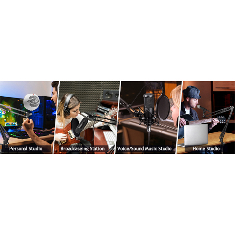 Su cabeza incorpora un acople estándar de 3/8” para utilizarlo con micrófonos con su propia base, una base plástica de 3.6 cm de diámetro para micrófonos de mano, y un suple adicional plástico de 1/2″, para aun mas tipos de micrófono.