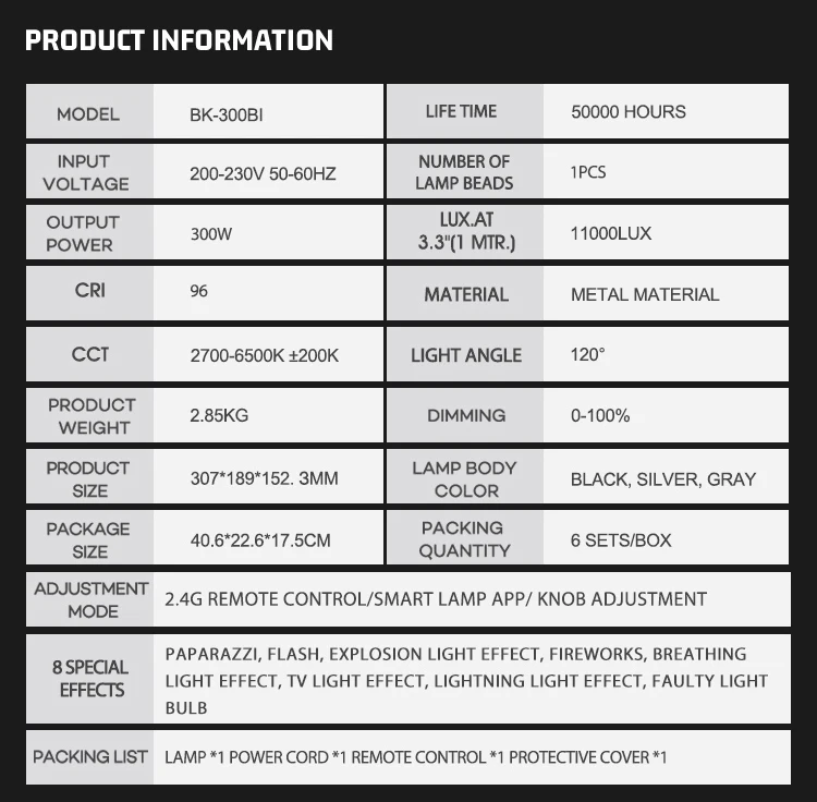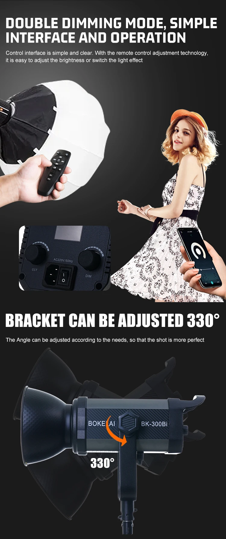 Iluminación Fotográfica LED de 300w para Video y Fotografía con Cámara, Regulable de 2700-6500K