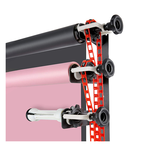 Estructura mecánica tipo cortina para 3 fondos de estudio. Puede ser instalado en paredes y techos.