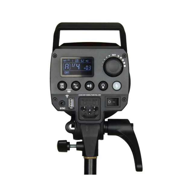 El MS300-V Godox es un flash de estudio con temperatura de 5800K, que reemplaza el modelo de lámpara halógena original de 150W con una lámpara de modelado LED de 10W, el cual consume muy poca energía y cuenta con gran brillo. Su tiempo de reciclaje es de 0,1 a 1,8 segundos con duraciones de flash de tan solo 1/2000 segundos.