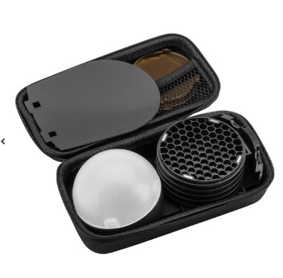 Kit de accesorios Godox AK-R1, para ser utilizados directamente en flashes Godox V1, o sobre el adaptador S-R1 junto a cualquier speedlight de cabeza rectangular, o sobre la cabeza H200R para el flash AD200 y AD200PRO.