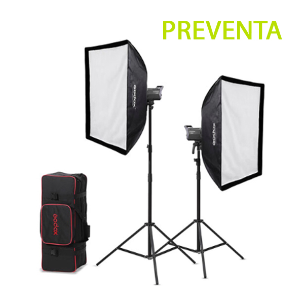 Kit de Iluminación Godox Litemons LA150D, con 2 luces de estudio Godox LA150D de 190 watts, pedestales, softbox de 90×60 y bolso.