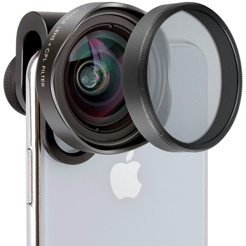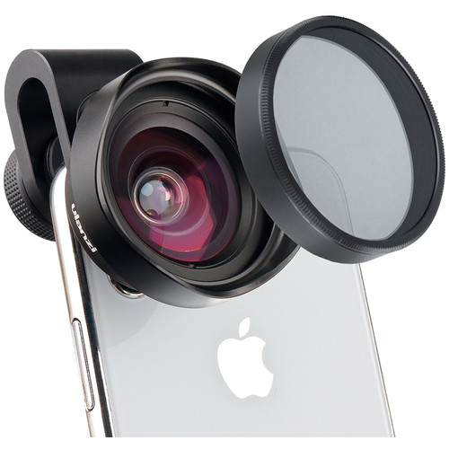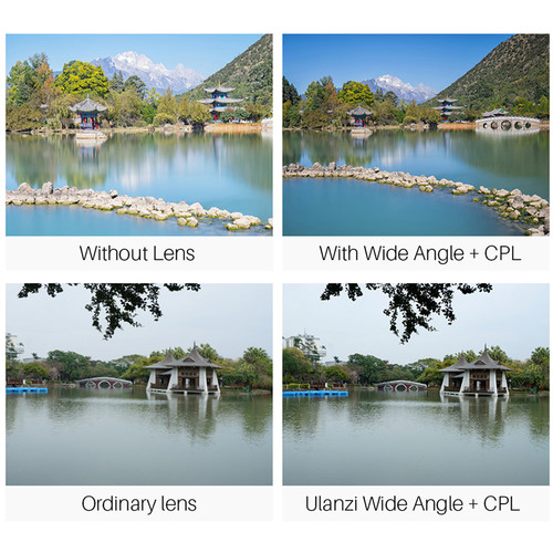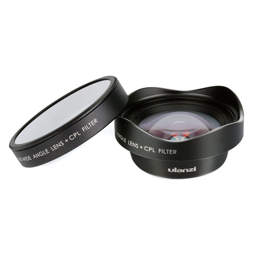 Lente universal para celulares Ulanzi 16mm gran angular, con filtro circular polarizado CPL, y visera.