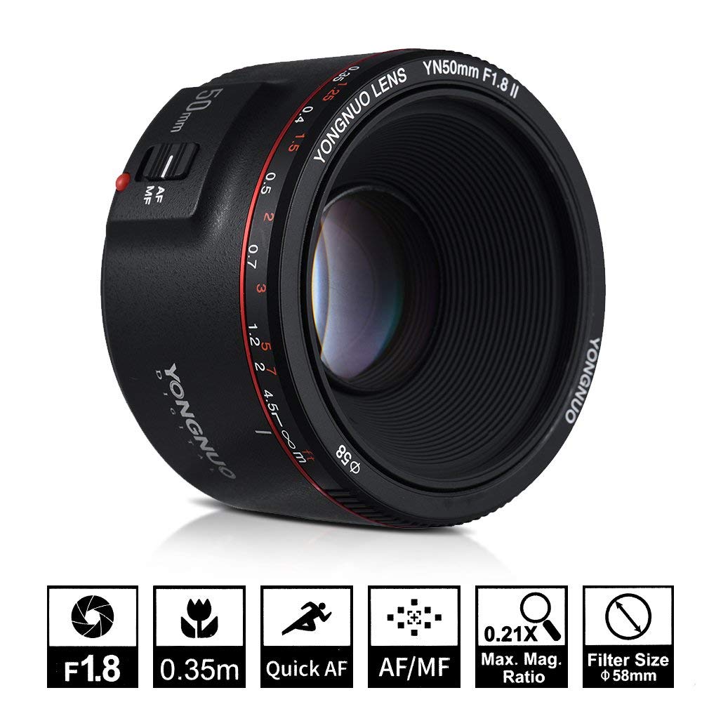 Lente Yongnuo YN50mm F1.8 II, para cámaras Canon DSLR con montura EF.