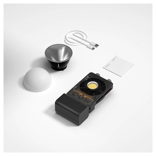 La luz cuenta con una batería incorporada que permite un uso de máxima potencia y un brillo del 100 % durante 30 minutos de uso continuo. La luz admite tanto la entrada de CC como carga rápida tipo C. También puedes conectar la CX100 a un banco de energía o adaptador compatible para mantener la potencia de salida completa, lo que garantiza un funcionamiento ininterrumpido durante sesiones prolongadas.