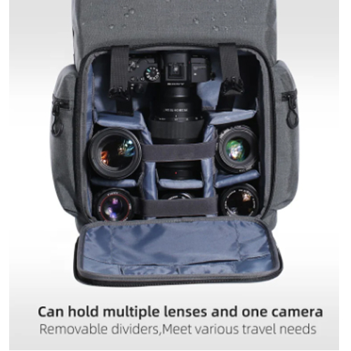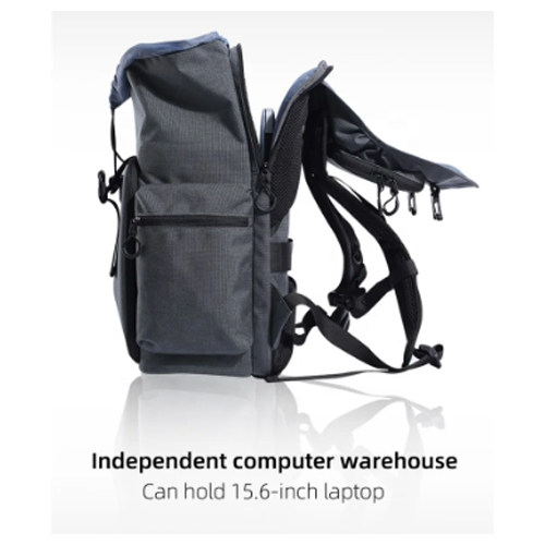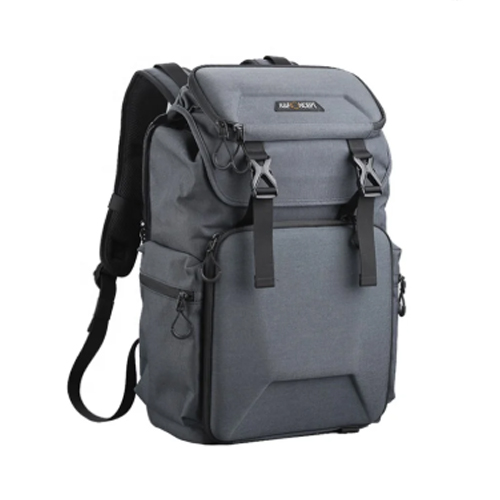 Mochila K&F Concept contragolpes de 22 litros color gris, e ingreso delantero, y compartimiento para laptops de hasta 15.6”.