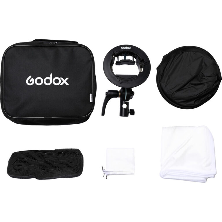 Softbox Godox 80 x 80 cm, con Bracket Godox Tipo S2, panal de abeja y bolso de transporte, para flashes de cámara tipo speedlight.
