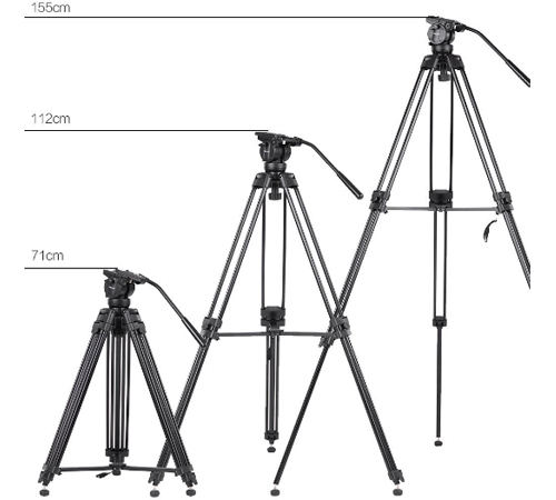 Trípode Profesional para video KingJoy VT-2500, de 155 cm de altura, y 15 kg de capacidad de carga.