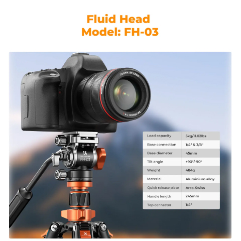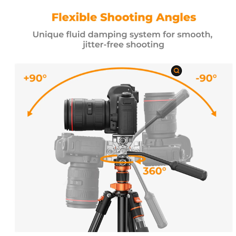 El trípode está equipado con un cabezal hidráulico con un ajuste de amortiguación suave, que puede lograr disparos panorámicos y aéreos para satisfacer las necesidades de los fotógrafos en diferentes escenarios de disparo.