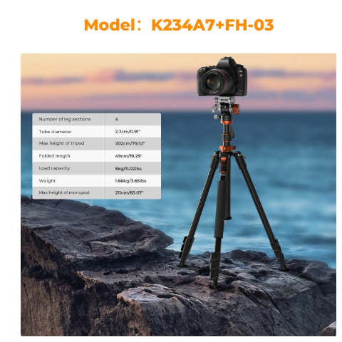 La altura máxima del trípode alcanza los 200cm, lo que proporciona suficiente estabilidad y altura de disparo tanto como sea posible, lo que facilita el disparo.
