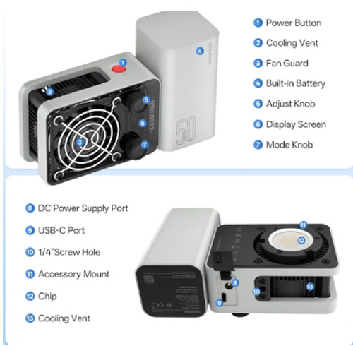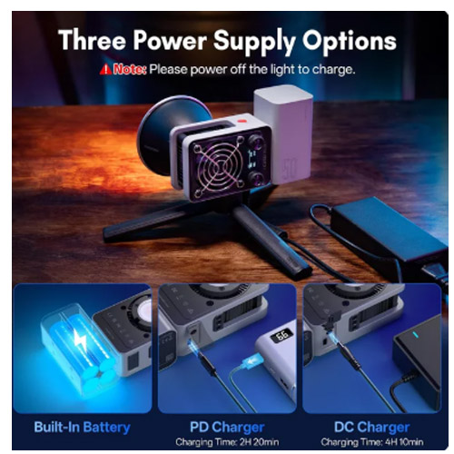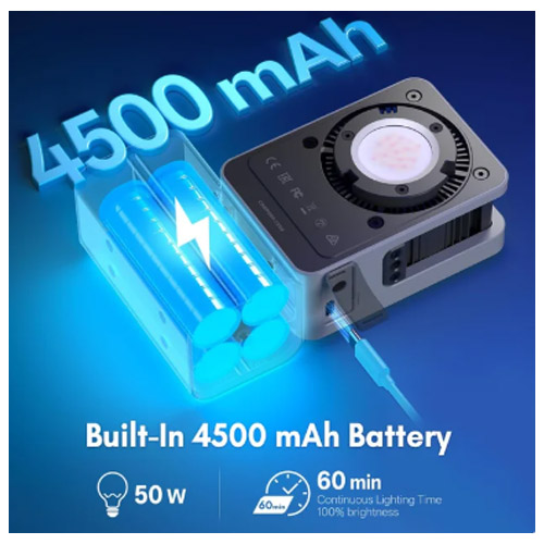 PRODUCTO NUEVO, sin desprecintar. Potente luz autónoma 2700-6500K de vídeo/foto profesional de 50w para proyectos outdoor o estudio, rosca para trípode, potente batería de 4500mAh y toma de corriente. Versátil por su tamaño que permite poner puntos de luz donde es complicado. Silencioso ventilador que evita el sobrecalentamiento. Controlable desde display trasero o desde app móvil. 13 efectos de luz: SOS, Paparazzi, Luz de vela, Tubo fluorescente parpadeante, TV, Relámpago, Luz estroboscópica,Explosión, Soldadura, Fuegos artificiales, etc.. ideal transmisión en vivo, videoblogs, entrevistas, videos cortos, bodas. Incluye difusor.